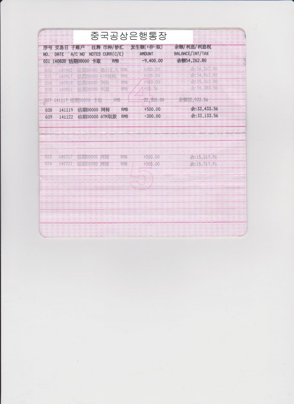 중국공상은행통장(2014년11월)