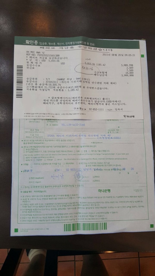 5. 현재잔액 : 2,458,482원 (2015년 8월 31일 기준)