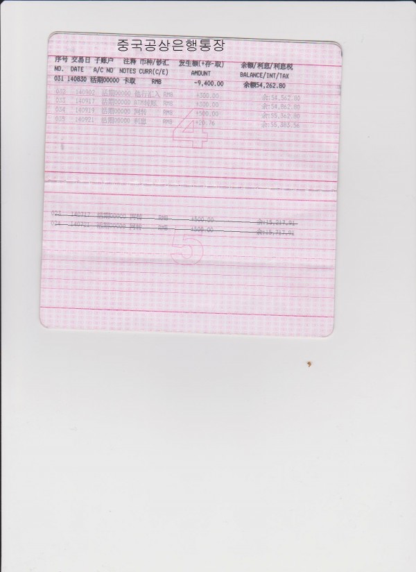 중국공상은행통장(2014년09월01일~09월30일)