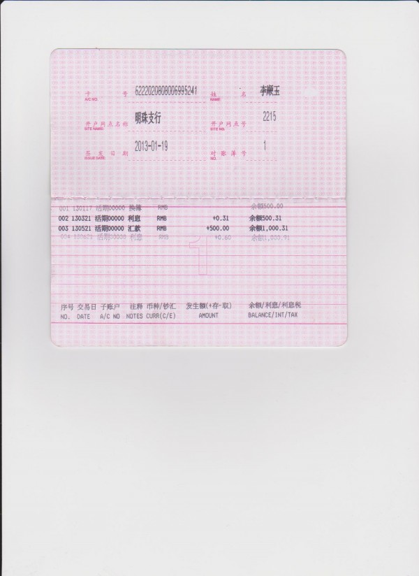 중국공상은행통장(2013년12월)