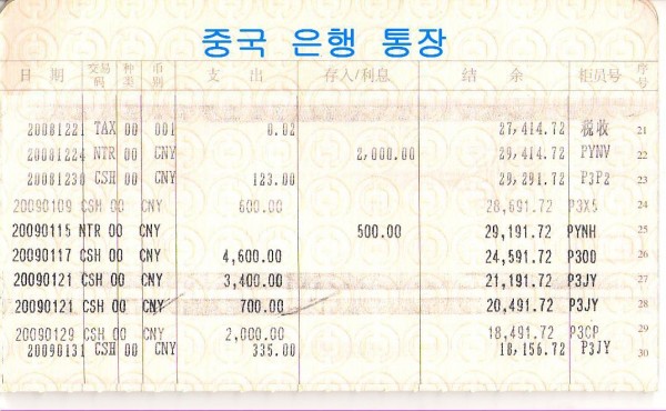 상기내용은 중국계좌 통장 스캔파일과 함께 첨부된 엑셀파일을 참고하시면 보다 상세한 내용을 보실 수 있습니다.