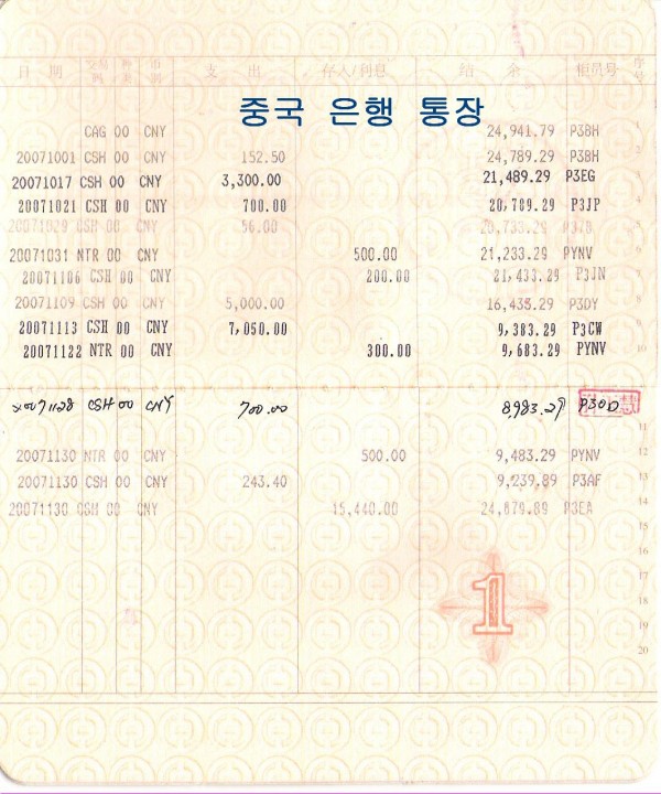 중국지역 제35획 재정보고(2007년11월01일~11월30일)