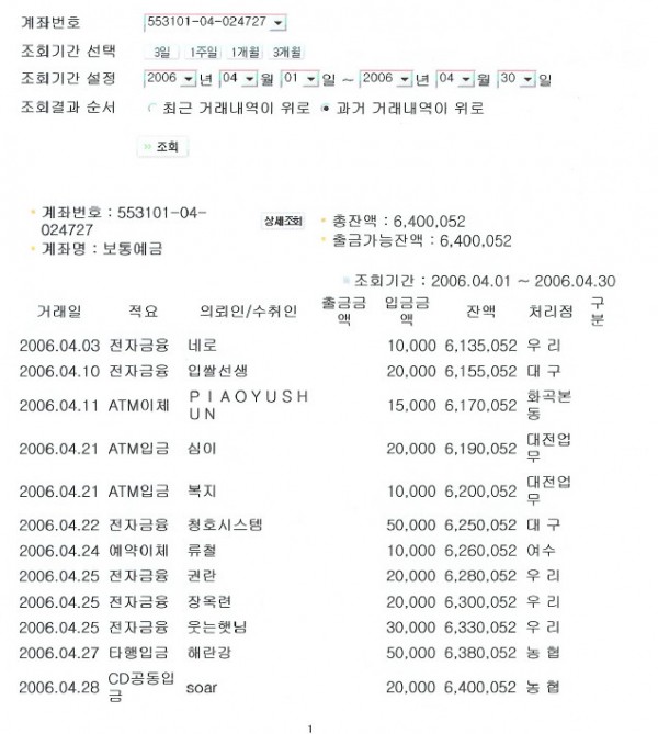 soar님 ..................... 20,000 원 총 잔액 ......... 6,400,052원