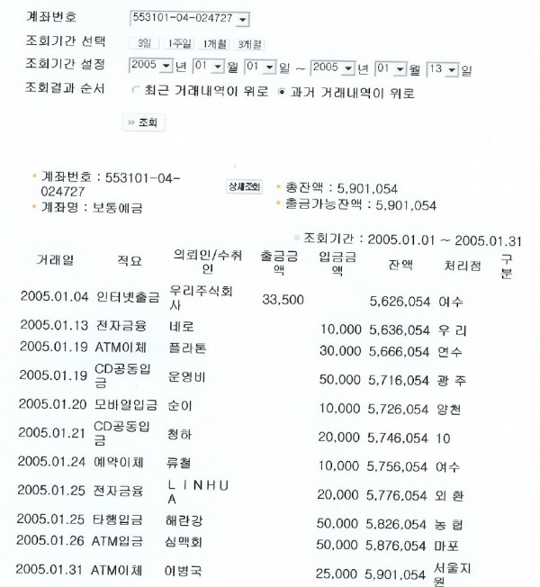 이병국님 ....... 25,000 .............. 총잔액 5,901,054