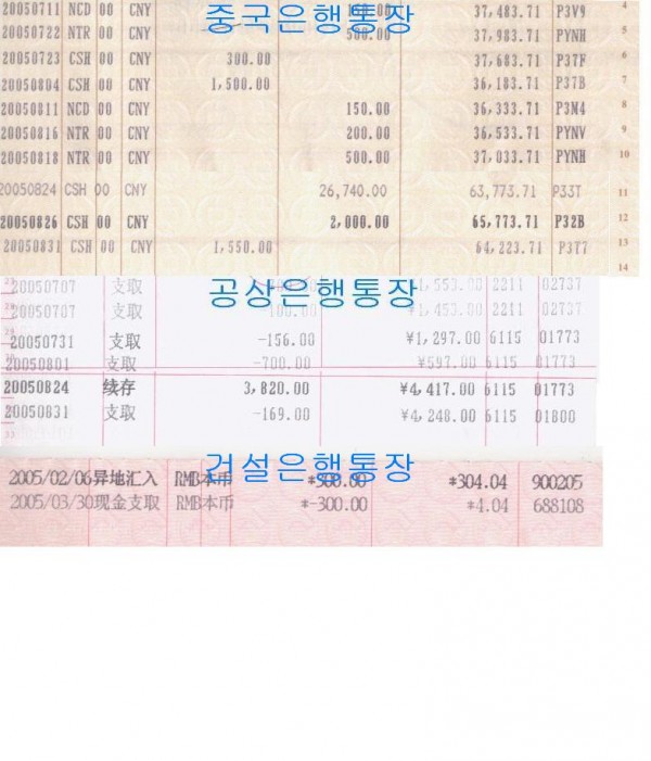 05년7월분중국은행구좌리식 : 241.68원 7월분공상은행세금 : 1.40원