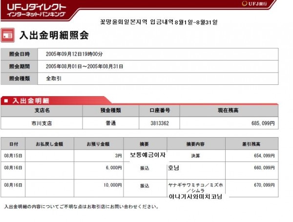 일본지역 제56회입금보고 (2005.8.1-2005.8.31)