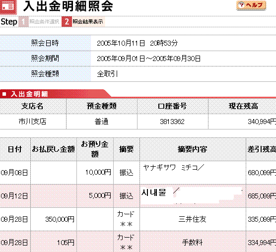 9월28일 출금 350,000엔 인출하여 현장에 송금