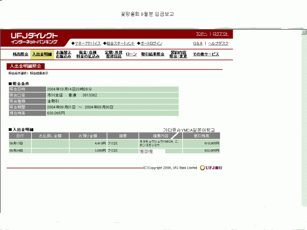 일본지역 제 45회 입금보고(2004.9.1-2005.9.30)