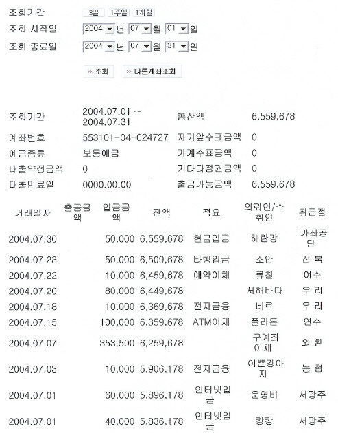 [한국] 제37회 재정보고 2004년 7월 1일부터 7월 31일까지