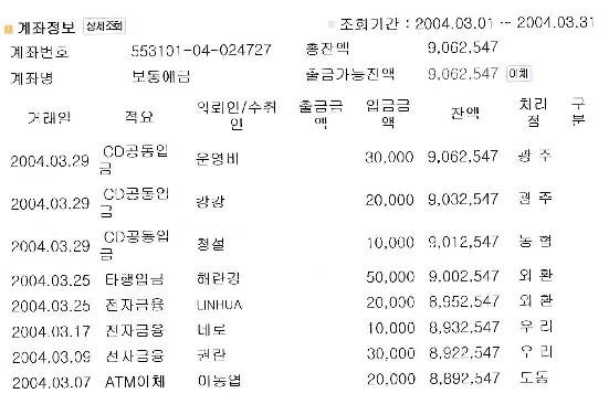 중국지역 통장입니다.