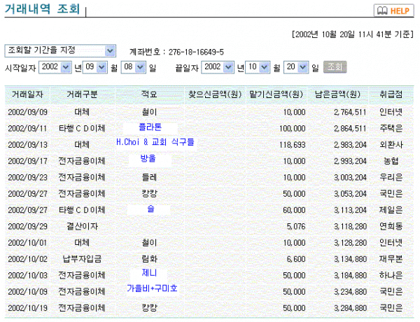 [한국] 제12회 꽃망울회-조선족助學기금회 후원금 내역 보고_2002.10.20